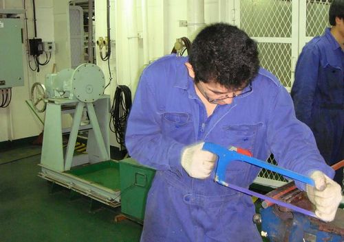 在轮机部进行的钳工比赛中,轮机长周建林要求选手们用M20的圆钢材料制作M10的普通公制螺母。这项比赛不仅检测着选手们的钳工水平,还需要他们有一定的机械制图知识和实际操作经验。周老轨了解到现在不少大学里钳工和机械制图加起来还不到一个月的课时,不少新员工对这方面的知识比较欠缺,因此想通过这次活动的开展,使新员工的钳工业务得到一定程度的提升。机工于峰对制作的第一个螺母不太满意,主动要求重新再做一个,在获得周老轨的批准后,于峰不负众望,取得了第三名的好成绩。该项比赛的第一、二名分别由机工长徐健和二管轮孙在安获得。