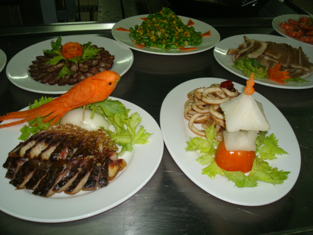 五一下午,厨房里一片热闹景象,理的理、洗的洗、切的切、烧的烧,到17:00时左右一切就绪,只等船长吹响冲锋号,大家披挂上阵。在等待之时,政委说,今天我们来个小比赛,不是喝酒,而是我们来给大厨辛辛苦苦烧的菜重新命名,看谁给菜命的名有新意有创意。政委这么一说,大伙儿都挽起袖子露出胳膊,拿出扳手腕的架势跃跃欲试。