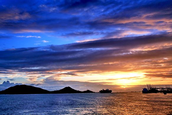 船过马六甲,防海盗班的站位与抛锚时的不同,两名值班人员分别站在驾驶室两侧。从这两个地方望开去,船舶周围应该没有什么盲点了,只是由于天气阴沉,黑夜被熨得像一张黑纸一样,只有闪电划过天空时,才能看清海面的纵深。