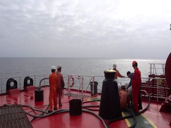 长航探索轮注重船员的业务技能培训与安全操作相结合,提高船员的业务技能和安全意识,确保船舶安全生产,为货主提供优质服务。图为长航探索轮检验和培训移动式货泵的连接和安全操作。(张建东)