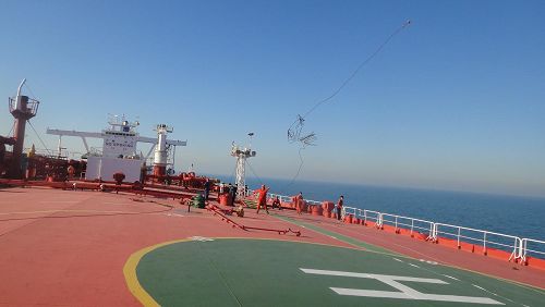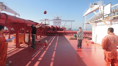 全船总动员,船长带头为大家示范动作,讲解要领,注意事项。哇塞,水手长第一撇就把25米的撇缆绳打直了27米,大家还没有回过味,轮机部杀出黑马,陈鹏27米。血拼开始了,甲板部的兄弟你拼我赶30米35米……终于明白什么叫没有最远只有更远。
