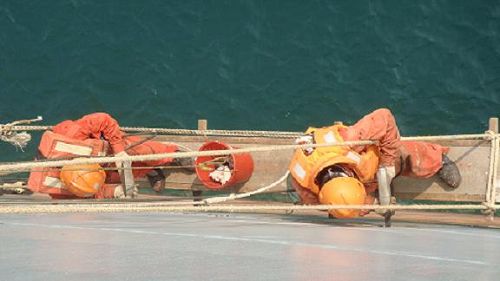 因为澳大利亚处于秋天,天气凉爽,为了提高工作效率,甲板部人员每天早十分钟到甲板,晚十分钟收工,中间休息少十分钟,一天下来就多干一个小时。天气不好时,他们就在甲板上给锚缆机、舷梯、货吊、出口阀连动杆、水密门加油、P/V阀加油。修理喉管处接岸蒸汽和惰气接头,更换3排舱惰气下舱处法兰螺丝等,做食品吊拉力实验等。下雨时,他们修理惰气回收控制箱和泵舱吊压力表,在吸烟室里修理隔膜泵、气管接头和除锈工具,扎拖把,刻马克,同样是忙忙碌碌。这期间,三副对救生、消防设备进行逐一检查,在检查中发现左舷救生艇释放钢丝不能自由滑出,于是将钢丝换新。在对登乘梯和引水梯进行检查时,发现左舷梯子部分绳子老化,其中一段断掉,立即换新。发现右舷引水梯底端两块橡胶风化破裂,严重影响安全,立即更换。