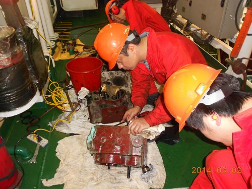 宁化424轮在“百日安全无事故”活动中完成发电机吊缸作业