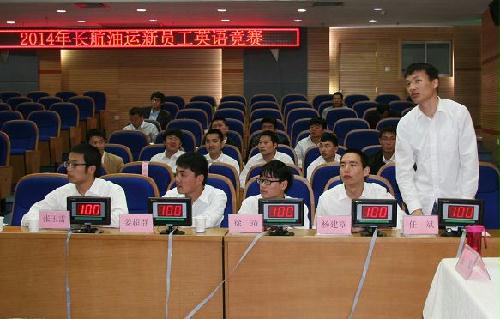 面对严峻的效益形势和控本要求,如何提升船员的英语交流能力,适应港口国、石油公司等检查要求?长航油运船员管理中心把目光放在新进公司的大学生身上,通过配发自编的应对检查英语教材和光碟、开展自学和短期培训相结合、组织竞赛等方法,激发新进员工学英语的热情。4月15日下午,长航油运2014年新员工英语知识竞赛决赛在江苏海事职业技术学院(江宁校区)多功能报告厅举行。此次英语知识竞赛的主题为“鼓励学习英语,积极提升能力”,来自大连海事大学、上海海事大学等四所航海院校新入职进公司的32名大学生参加了比赛。