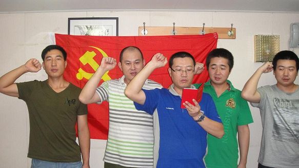 二是组织义务劳动。7月2日晚饭后,全体5名党员一齐参与党员义务劳动活动,大家在政委的带领下,齐心协力进行食品库(蔬菜库、鱼库、肉库及干货库)的清洁整理工作,经过近两个小时的努力,大家搬、拖、抹、刷、擦、扫并用,彻底清除了食品库内一些卫生死角的污垢,库内整齐、卫生、明亮。既彰显了党员的模范带头作用,集聚了正能量,同时也为满足即将抵达的澳洲外部检查要求做好了准备。(刘树森)