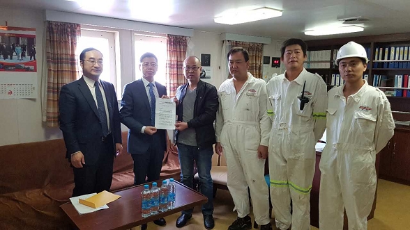 该轮船长孟善春代表全体船员,对党和国家对船员们的关怀表示感谢,并表示全体船员将进一步弘扬“爱国、进取、敬业、奉献”的海员精神,增强海员职业自信心和自豪感,通过自身的不懈努力,为企业的可持续发展以及把我国建设成为海运强国和海洋强国作出应有贡献。